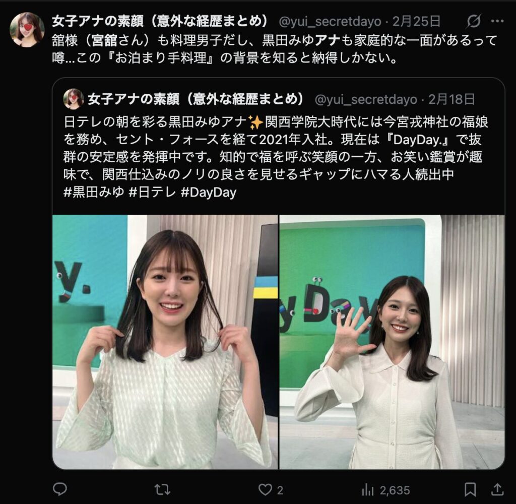 黒田みゆアナとの共演歴は?組み合わせが話題に