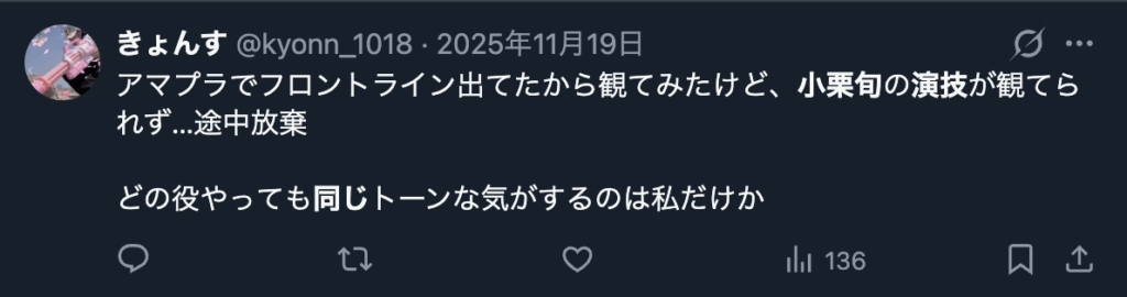 そのため「また同じ演技に見える」と感じる人がいる一方で、「この雰囲気が小栗旬らしくて良い」と受け取る人もいます。