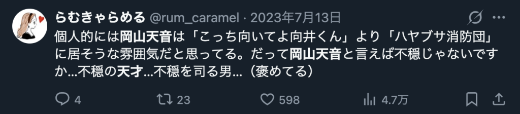 岡山天音の決め顔
