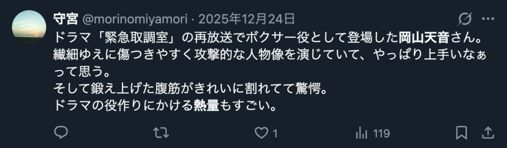 こうした細かな部分が、「作られた演技」というより「そこに生きている人」に見える理由だと感じる人もいるようです。